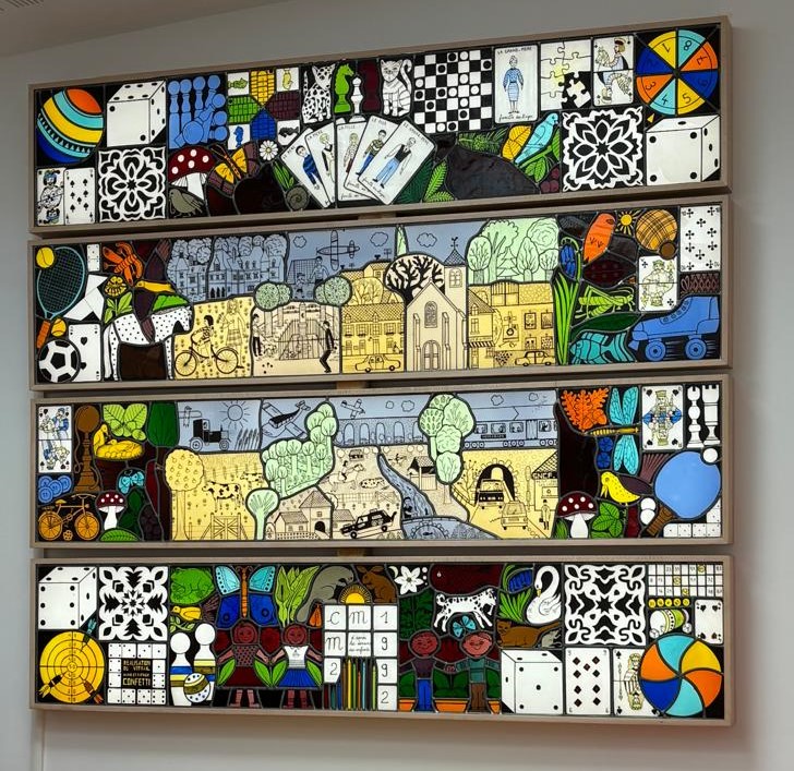 Le vitrail des maîtres verriers Annie et Patrick Confetti, récemment accroché à la Bibliothèque, a été inauguré samedi 12 octobre 2024.